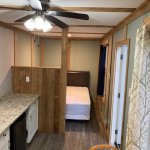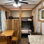 The Sugar Shack - Bunkie includes 1 bedroom with a queen and the other room with a single bunk bed above a double bed. Like all of our rentals, it includes comfortable mattresses with protectors to ensure a relaxing night sleep. Be sure to bring your own bedding/pillows. It also includes mini bar fridge, sink with lake temperature water, counter, kitchen table and 4 chairs, ceiling fan, garbage pail, outdoor picnic table, 4 lawn chairs and firepit. This is a bare bones unit. Sorry, no pets permitted. The Sugar Shack is located on site 20 in the Maple Grove section located on the top right of our map; close to the washroom/shower facility. This is "glamping" Manitoulin Resort style.
